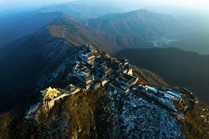 循著山勢(shì)往上,蜿蜒曲折的盤(pán)山公路兩邊,層巒疊翠,云海蒸騰,杜鵑灼灼,古木參天。公路盡頭,視野陡然開(kāi)闊,一座佛寺金頂在云霧中若隱若現(xiàn),恍若仙境。寺院入口,雕工精細(xì)的青石門(mén)楣上刻著“大慈恩寺”,兩側(cè)是“漢東地闊無(wú)雙院”“楚北天空第一峰”的聯(lián)語(yǔ)。這座寺院與武漢寶通禪寺同源共脈,卻鮮少?gòu)垞P(yáng)。