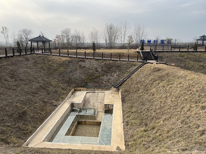 記者走訪了2018年發(fā)掘的義地崗墓群棗樹(shù)林墓地。登上這個(gè)長(zhǎng)條形的崗地,看到3處已發(fā)掘的大墓保留著墓葬遺址,現(xiàn)場(chǎng)有專(zhuān)人看護(hù),并搭起房頂防止雨水滲漏、墓壁塌陷。其中相鄰的兩處分別是曾公求(田求)及其夫人漁、曾侯寶及其夫人羋加的合葬墓。