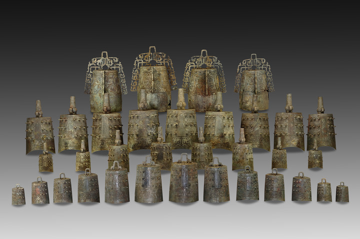 從葉家山、郭家廟、蘇家壟到義地崗、棗樹(shù)林,再到擂鼓墩等曾國(guó)墓地,累計(jì)3萬(wàn)余件出土文物及豐富的金文資料,實(shí)證曾國(guó)與史書(shū)所記載的“隨國(guó)”為一國(guó)兩名。這個(gè)“考古挖出來(lái)的曾國(guó)”大致分西周早期、西周晚期至春秋早期、春秋中期至戰(zhàn)國(guó)中期3個(gè)階段,時(shí)間跨度700余年。各個(gè)時(shí)期的曾國(guó)墓葬中都出土大量精美的青銅器,都有著豐富的音樂(lè)文物。編鐘,幾乎成為曾侯家族陪葬的“標(biāo)配”。