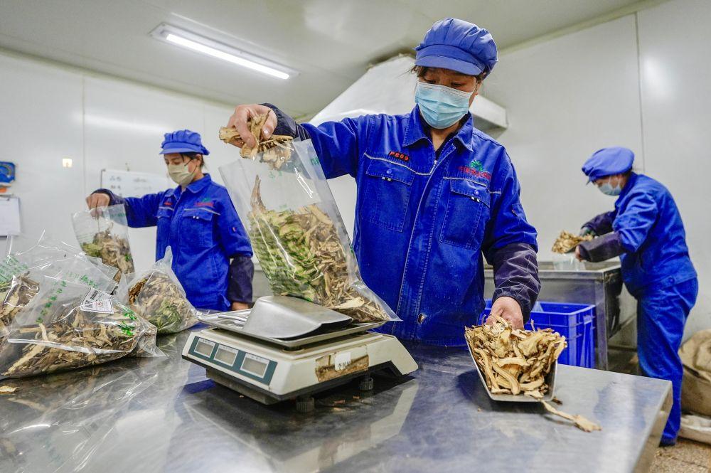 2026年1月26日,工作人員在寧夏固原市隆德縣一家藥材加工企業(yè)分包當(dāng)歸。新華社記者 楊植森 攝