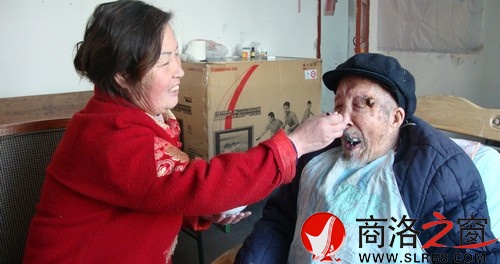 1月9日早上8點多,寒風陣陣,家住商州區(qū)迎賓路社區(qū)背街一組的李慧哲匆匆忙忙地來到樓下,買了一碗豆腐腦提上了樓,來到三樓的房間里,扶起了躺在床上的外公,麻利地給外公穿上上衣,靠床坐好,然后端起床邊的豆腐腦碗,邊給外公喂,邊和外公聊天,“張嘴啊,熱不熱,今早上是豆腐腦,給你換換口味。”雖然耳朵已背得聽不清,也很難說出一句話,看著孫女的笑臉,老人還是笑著,配合地吃著。十多分鐘后,一碗飯喂完了,李慧哲給外公換上干凈的尿布,叮囑幾句,就又忙著開始收拾屋子了。多年來,每天早上,李慧哲都是在這樣的情景中拉開自己一天的序幕。