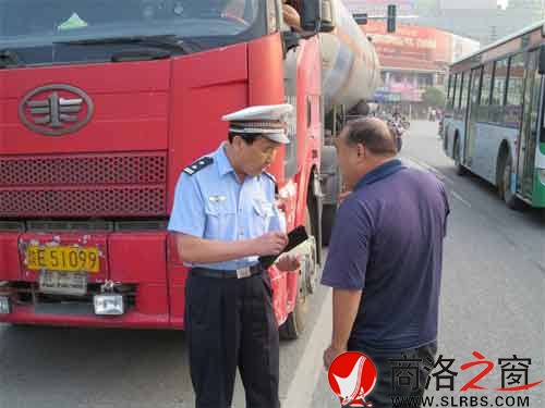 8月3日,商州交警大隊(duì)民警在市區(qū)立交橋處值勤時(shí)對(duì)違法入城的危化品運(yùn)輸車(chē)輛進(jìn)行安全檢查。