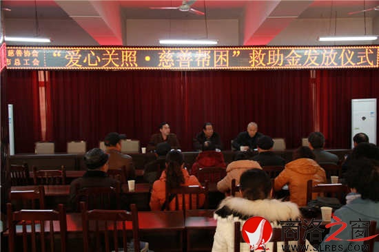 商洛之窗訊 (記者 李小軍 王孝竹)2月3日,市慈善協(xié)會(huì)、市總工會(huì)"愛心關(guān)照·慈善幫困"活動(dòng)救助金發(fā)放儀式在商州舉行。市慈善協(xié)會(huì)會(huì)長(zhǎng)王有德、市總工會(huì)副主席余偉現(xiàn)場(chǎng)為商洛市機(jī)械廠崔彥堂等10名困難職工發(fā)放了救助金。