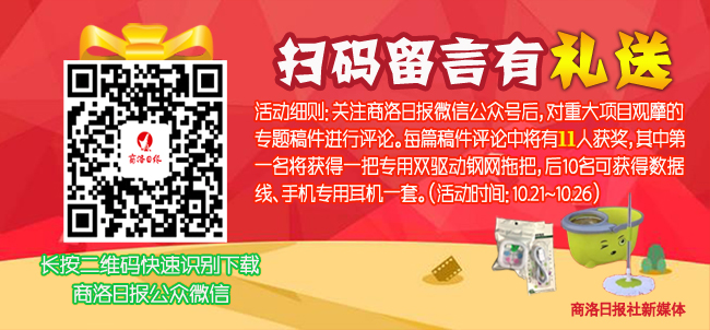 掌中商洛訊 自10月21日開始,由商洛日報新媒體主辦的全市重點項目觀摩“優(yōu)秀評論留言大賽”開展以來,得到廣大讀者的積極響應(yīng)。目前點擊全市重點項目建設(shè)的讀者已有2萬人,其中點贊全市重點項目建設(shè)、贊揚全市重點項目建設(shè)的評論的人數(shù)已近五百人。