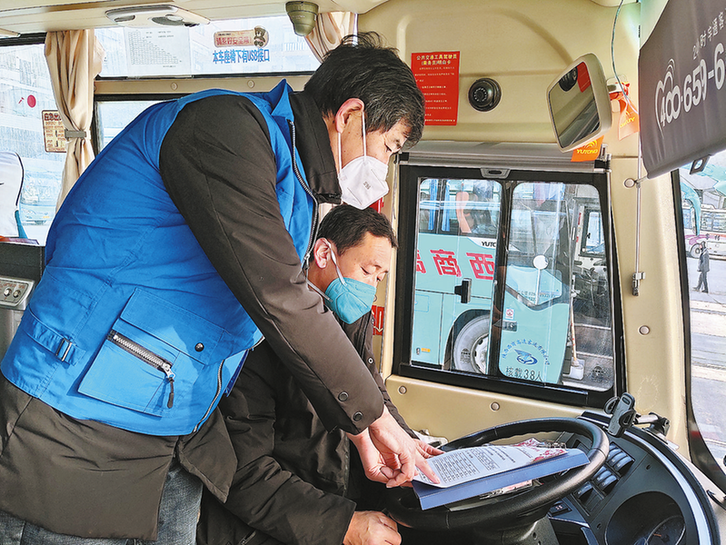 ?2023年春運工作拉開帷幕,鎮(zhèn)安縣氣象局細化服務方案,制作春運氣象服務專報及時發(fā)送至交安委成員單位,確保旅客出行安全。圖為氣象工作人員在市汽車運輸公司鎮(zhèn)安分公司向司乘人員發(fā)放氣象服務產品。 (本報通訊員 程衛(wèi)紅 攝)