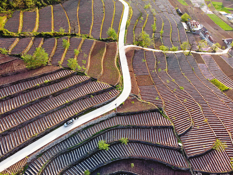 田園綜合體是盤活鄉(xiāng)村資源、打造特色農(nóng)業(yè)的重要載體。近年來,鎮(zhèn)安縣依托當(dāng)?shù)貎?yōu)越的自然生態(tài)環(huán)境,以土地流轉(zhuǎn)為抓手,加強(qiáng)基本煙田規(guī)劃與保護(hù),實(shí)行以烤煙為主、烤煙與特色農(nóng)作物的輪作模式,推動“煙葉強(qiáng)、煙農(nóng)富、煙區(qū)美”烤煙產(chǎn)業(yè)田園綜合體建設(shè)。圖為鎮(zhèn)安縣鐵廠鎮(zhèn)烤煙田園綜合體覆膜農(nóng)田似“大地指紋”,非常壯觀。 (本報(bào)通訊員 陳緒榮 攝)
