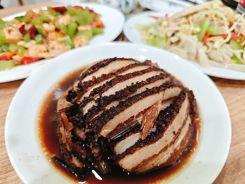 △商洛傳統(tǒng)名菜——商芝肉,承續(xù)商山四皓隱逸文化,精選五花肉與商芝同烹,色澤紅潤(rùn)、肉質(zhì)軟糯,入口咸香醇厚,盡顯商洛千年飲食風(fēng)韻。