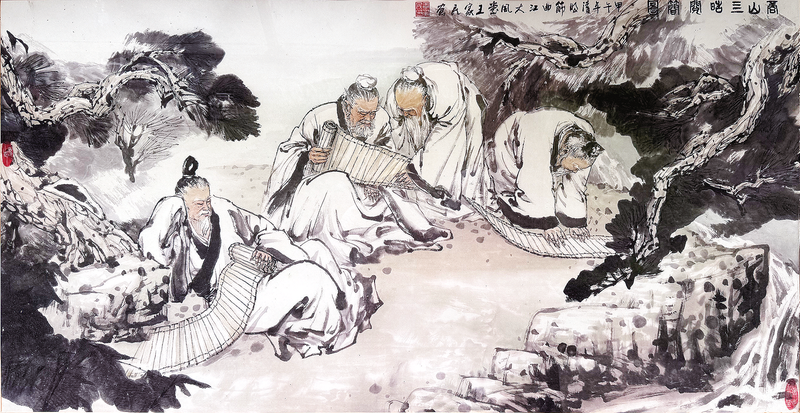 四皓——東園公唐秉、夏黃公崔廣、綺里季吳實(shí)、甪里先生周術(shù),為避秦時(shí)焚書(shū)坑儒之禍,隱入商山,采芝棲巖,以清貧之身守士人之節(jié)。他們?cè)鴲u于劉邦輕侮士人,拒其征召,卻在太子劉盈危難之際,毅然出山,以皓首巍冠之姿鎮(zhèn)服高祖,穩(wěn)漢室于既傾。事成后,四皓拒封歸隱,飄然復(fù)返山林。