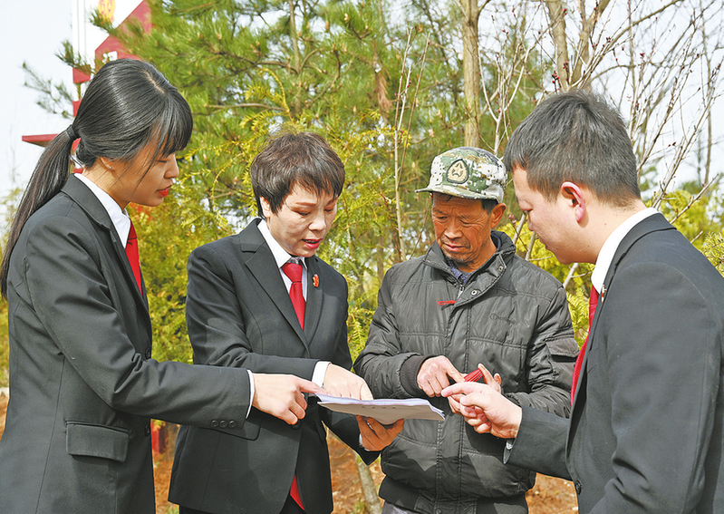 除做好案件審理工作外,周夢琳(左二)還擠出時間向群眾宣傳秦嶺生態(tài)保護(hù)的意義。 (資料圖片)