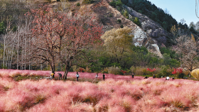 11月2日,置身于商州區(qū)江山風(fēng)景區(qū),美不僅在于引人注目的柿子樹,粉黛亂子草也為秋天增添一抹絢爛。一片片粉色“云霧”仿佛是秋天的使者,散發(fā)著無盡的溫柔與浪漫。柿子樹不僅承載了游客對幸福生活的期許,還成為商洛秋天的一個象征,使人們在觀賞之余,心頭涌動著那份對美好生活的向往。當(dāng)火紅的柿子、粉黛亂子草與山石、游人融為一體,一幅色彩斑斕的晚秋畫卷令人心曠神怡。(本報記者 楊 鑫 攝)