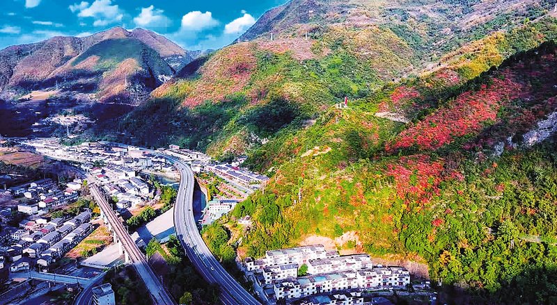 △在柞水縣下梁鎮(zhèn),紅綠相間的葉子層層疊疊點(diǎn)綴在山間,把小鎮(zhèn)周圍變成了彩色,遠(yuǎn)遠(yuǎn)望去煞是美麗。