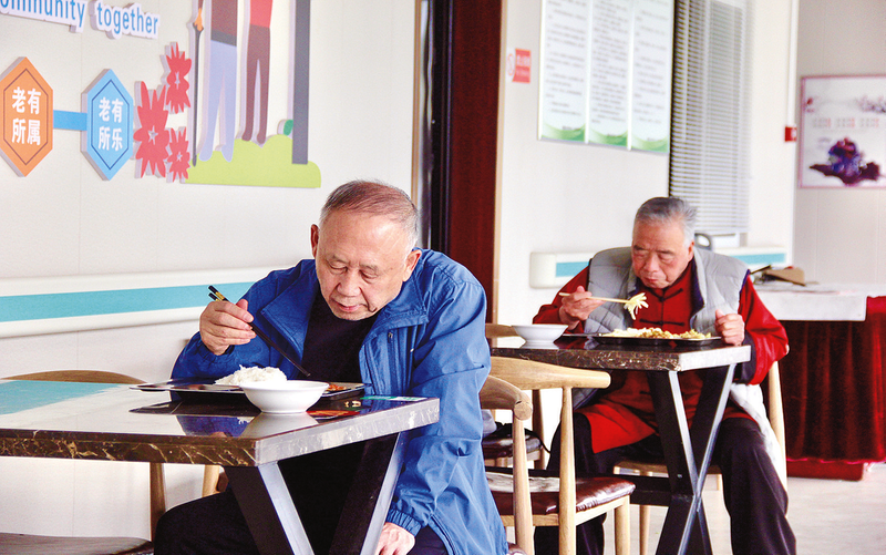 ▽老人在商州區(qū)四皓社區(qū)老年人日間照料中心享用美味午餐。