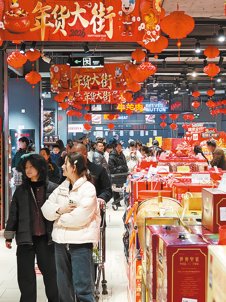 △中心城區(qū)各大商超年貨品類豐富齊全,市民可自由挑選、隨心搭配采購。