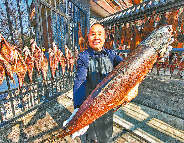 △商州區(qū)一商戶自制臘魚、臘肉走俏市場,節(jié)前銷量大幅攀升。