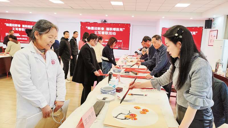 2月5日,市婦幼保健院聯(lián)合秦粵文化創(chuàng)新研究院、大秦嶺文藝聯(lián)合會(huì)商洛工委舉辦“翰墨迎新春 福聯(lián)暖醫(yī)苑”義寫春聯(lián)活動(dòng),書畫家們現(xiàn)場(chǎng)為醫(yī)護(hù)人員書寫春聯(lián)120多副、創(chuàng)作國(guó)畫作品60多幅。(本報(bào)記者 賈書章 攝)