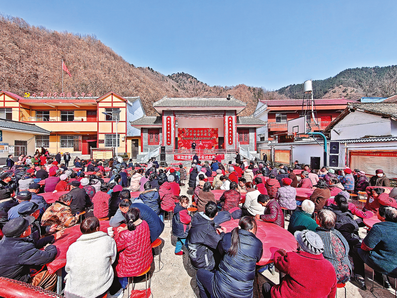 2月10日,商州區(qū)楊斜鎮(zhèn)水平村舉辦“歡歡喜喜過(guò)大年,平平安安享團(tuán)圓”敬老愛(ài)老新春聯(lián)歡會(huì)。邀請(qǐng)全村300多名60歲以上老人歡聚一堂,共同欣賞精彩文藝演出、品嘗傳統(tǒng)大燴菜,歡歡喜喜迎春節(jié)。(本報(bào)記者 楊 鑫 攝)