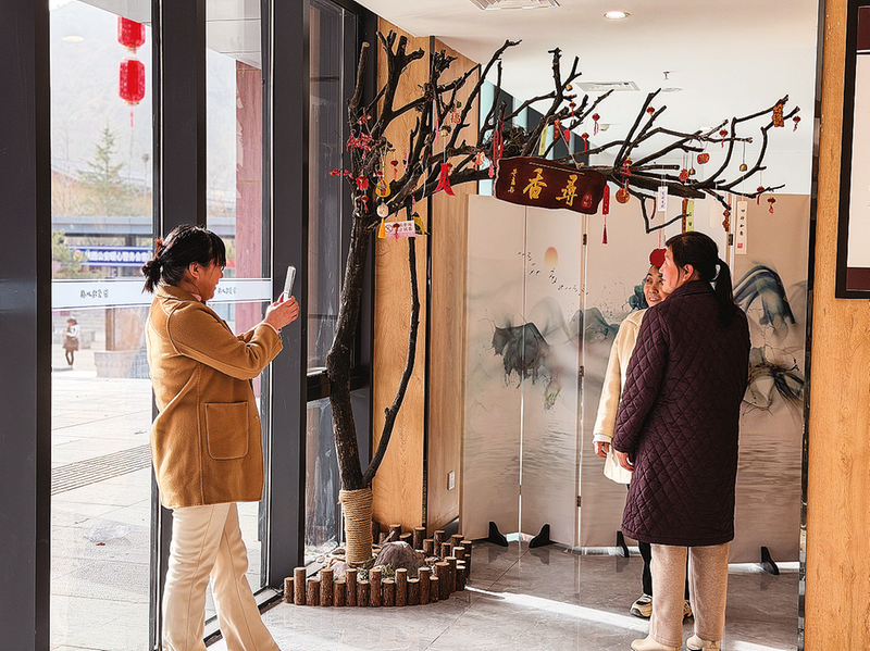 進入倉頡小鎮(zhèn),只見景區(qū)內(nèi)處處裝點著以“馬”為主題的特色裝飾,“2026馬年吉祥”“指誰誰發(fā)財”“我是財神的小乖乖”等印有卡通趣味圖案的打卡點吸引了眾多游客駐足拍照。景區(qū)大廳內(nèi)陳列的數(shù)套精美漢服,同樣吸引著年輕游客爭相試穿體驗。據(jù)了解,今年春節(jié)前后,商洛市文旅局策劃了“商洛市2026年春節(jié)文旅特色活動”,以“歡歡喜喜過大年”“三秦四季 年味商洛”為核心,深度融合馬年生肖文化與本土特色,精心策劃102項約800場次文旅活動,同步推出14項惠民措施與兩條新春精品旅游線路。