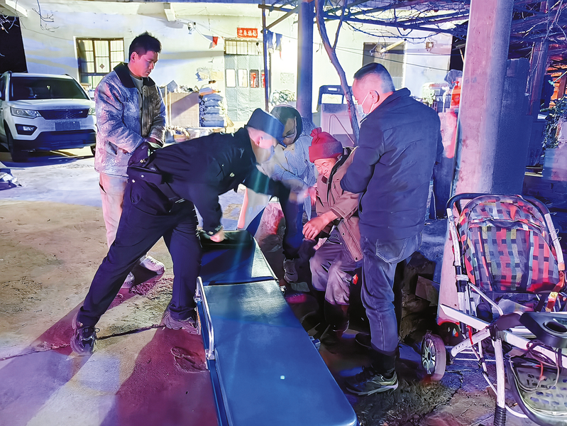 2月15日凌晨2時,柞水縣下梁派出所聞警而動,處警民警在下梁九天山景區(qū)救助一名因拾荒受傷的老人,并迅速送醫(yī)治療。 (本報通訊員 黃 鵬 攝)