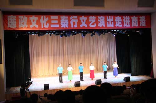 演出在《秦嶺最美是商洛》優(yōu)美的旋律中拉開帷幕,觀眾們被《情系老百姓》、商洛花鼓《六斤縣長(zhǎng)》、《信任與責(zé)任》等飽含黨群魚水情的節(jié)目所吸引,掌聲的一次次響起和演員們汗水、淚水的一次次流淌,無(wú)不展現(xiàn)廉政文化的熏陶和感染力。