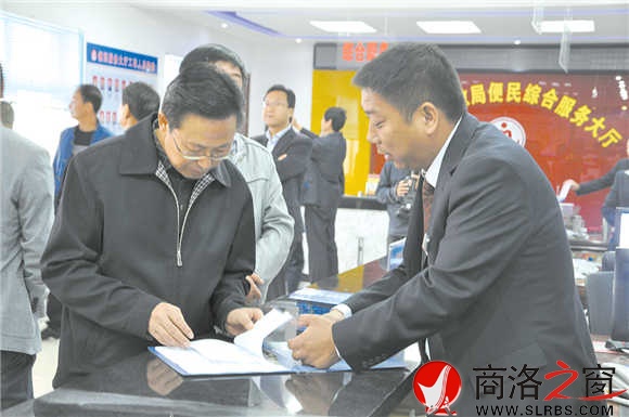 市民政局局長賈意有在山陽縣民政局便民綜合服務(wù)大廳指導(dǎo)工作