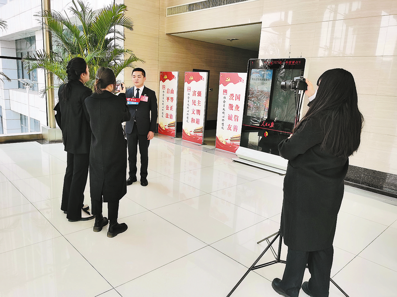 ④1月31日,政協(xié)委員接受媒體采訪。 (本報記者 楊 鑫 攝)