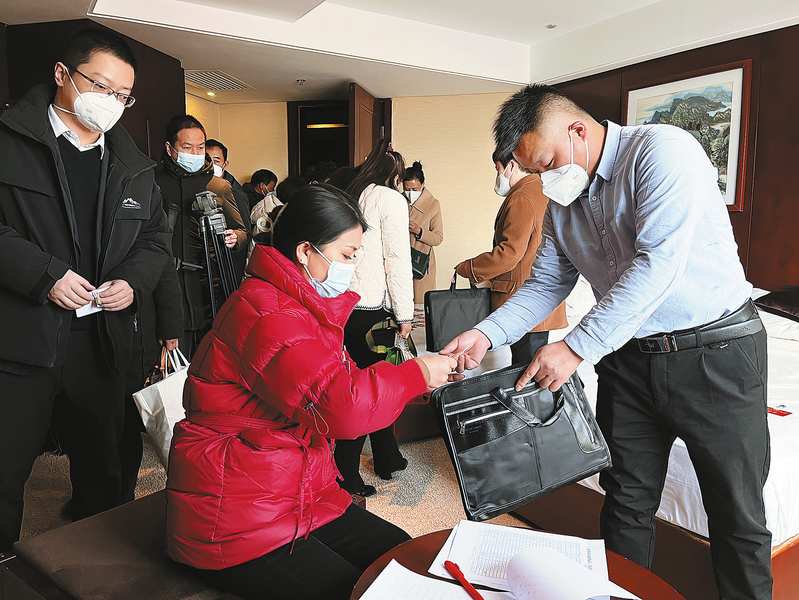 ①1月31日,參加市第五屆人民代表大會第三次會議的代表們陸續(xù)趕到駐地酒店報到,在登記、領取資料后,代表們就大會議程和各自帶來的議題互相交流,從對口幫扶、鄉(xiāng)村振興到養(yǎng)老、教育、醫(yī)療,代表們關切的議題涉及經濟社會發(fā)展的方方面面,他們將帶著群眾的心聲和發(fā)展的建議,在接下來的幾天時間里,就推動商洛高質量發(fā)展積極建言獻策、履職盡責。 (本報記者 謝 非 攝)