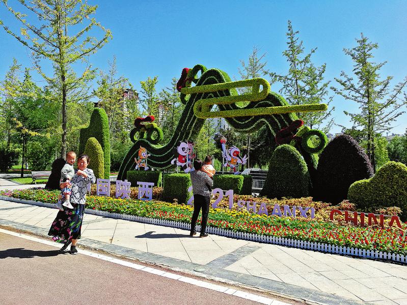 銀杏公園里新建的綠色景觀凸現(xiàn)十四運(yùn)會元素