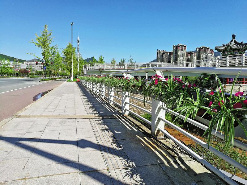 州城路的得名也許是因?yàn)樗鼥|邊的盡頭是當(dāng)年的老商州城舊址。如今,老商州城只剩下蓮湖公園的一處舊城垛,在這些城垛老磚頭的刻記里,是壓根不會想到州城路上會冒出個城市綜合體——萬達(dá)廣場,也不會想到州城路上架起了人行天橋。萬達(dá)廣場片區(qū)當(dāng)年曾是老城區(qū)的棚戶區(qū),民居中混雜分布著墳場、垃圾場。2019年6月商洛萬達(dá)廣場開業(yè),首日客流就超23萬人次。商洛萬達(dá)廣場是萬達(dá)集團(tuán)商業(yè)布局陜南地區(qū)的首座萬達(dá)廣場,匯集了永輝超市、唯品會等11家大型主力店,169家優(yōu)質(zhì)品牌首次入駐商洛,成為商洛百姓購物、休閑、娛樂、體驗(yàn)一站式服務(wù)的商業(yè)中心。州城路人行天橋全長39.5米、橋面寬4米,是商洛城區(qū)首批新建的3座人行天橋之一。3座人行天橋均采用鋼筋混凝土基礎(chǔ)+鋼箱梁形式,在單側(cè)設(shè)置緩行坡道,橋身設(shè)有垂直綠化景觀。人行天橋不僅解決了中心城市主干道路校園、飲食城交通擁堵問題,同時填補(bǔ)了商洛市城區(qū)沒有天橋的空白,優(yōu)化了城市路網(wǎng)布局,提升了城市品位形象。在城建管理部門的精心打理下,州城路人行天橋綠植鮮花夾道,已成為鬧市空中一景。