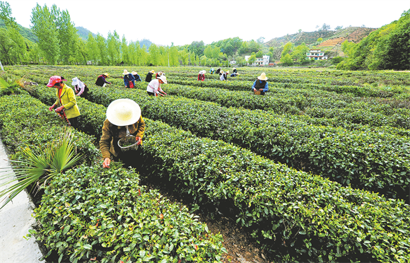 商南沁園村茶園采茶場景