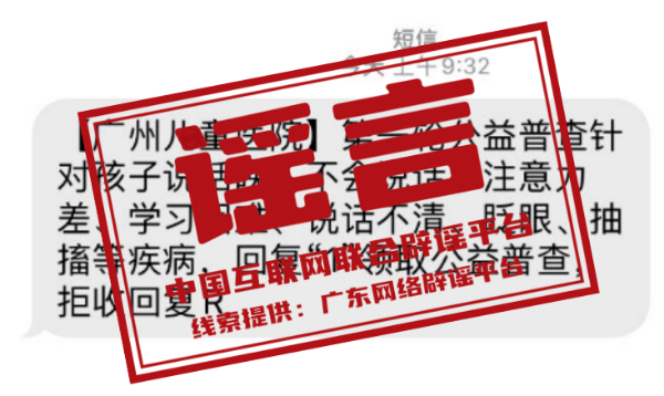 真相:近期,有社會醫(yī)療機構冒用廣州市婦女兒童醫(yī)療中心(以下簡稱“廣州婦兒中心”)名稱,通過群發(fā)短信的方式,宣傳該中心正在進行“身高普查”“針對孩子說話晚,不會說話、注意力差等”等公益普查項目。對此,廣州婦兒中心發(fā)布聲明稱,目前,該中心未就上述公益普查項目與其他任何醫(yī)療機構或社會組織存在合作關系,也未曾通過短信、電話向廣大患者推送過醫(yī)療信息。特此提醒廣大市民,切勿輕信此類信息,并注意保護個人隱私。(來源:廣東省互聯(lián)網舉報中心)