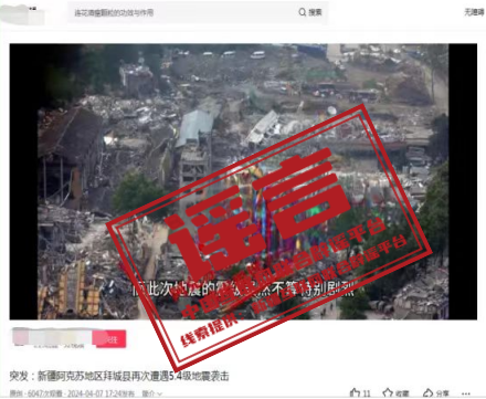 詳情:4月7日、8日,新疆阿克蘇地區(qū)拜城縣先后發(fā)生5.4、5.1級(jí)地震。震中位于無(wú)人區(qū),目前暫未收到人員傷亡或財(cái)產(chǎn)損失報(bào)告,當(dāng)?shù)赝ㄓ?、供電、交通正常。但有部分自媒體為博眼球、蹭流量,利用AI智能技術(shù)等手段拼湊網(wǎng)絡(luò)舊圖,發(fā)布拜城地震不實(shí)圖文、音視頻等信息,嚴(yán)重誤導(dǎo)網(wǎng)民。阿克蘇地區(qū)互聯(lián)網(wǎng)信息辦公室提醒,對(duì)在網(wǎng)上蓄意編造、傳播散布謠言,擾亂公共秩序等違法行為,網(wǎng)信部門將會(huì)同公安機(jī)關(guān)依法嚴(yán)厲打擊。(來(lái)源:“新疆網(wǎng)絡(luò)辟謠”微信公眾號(hào))