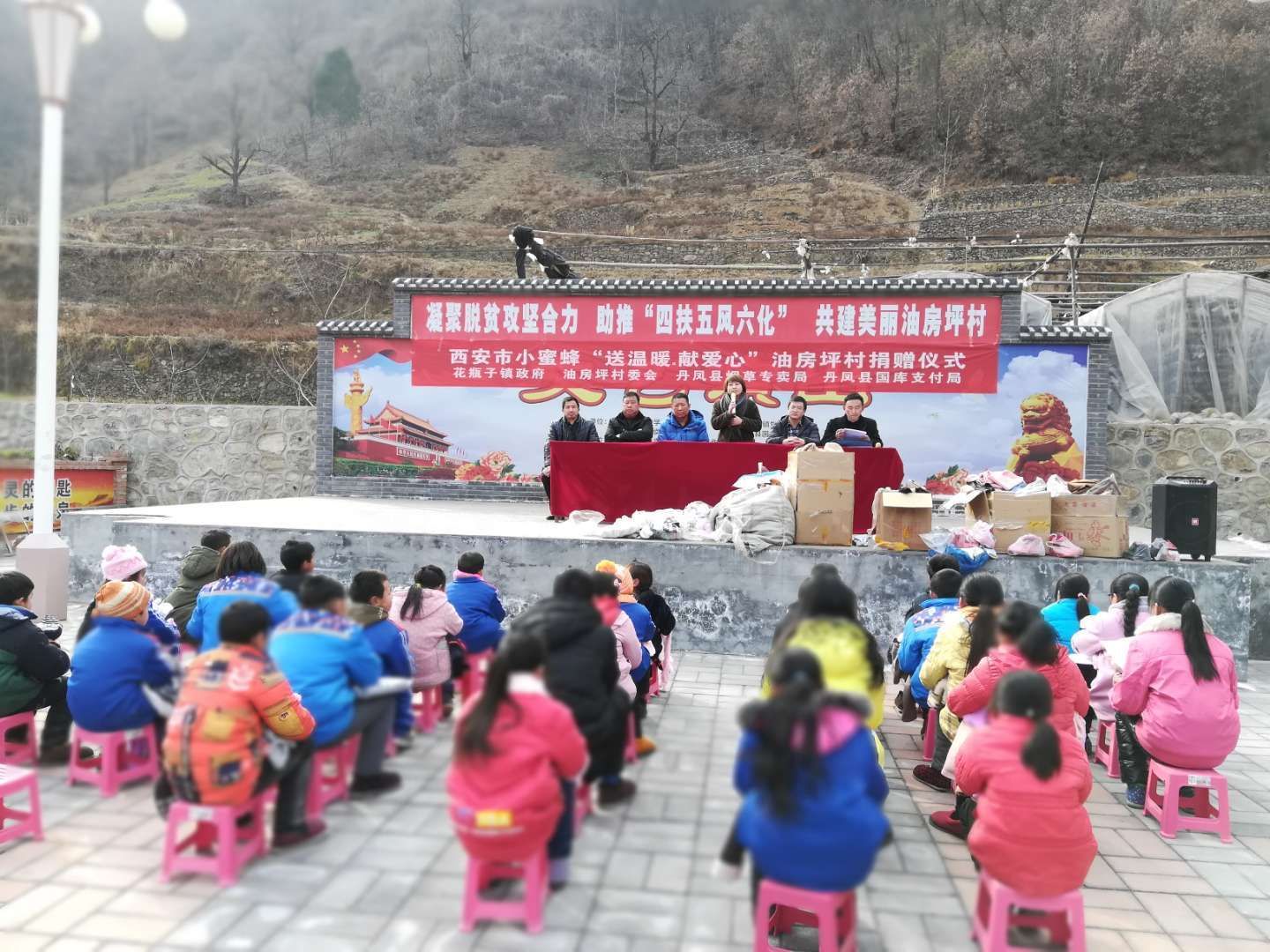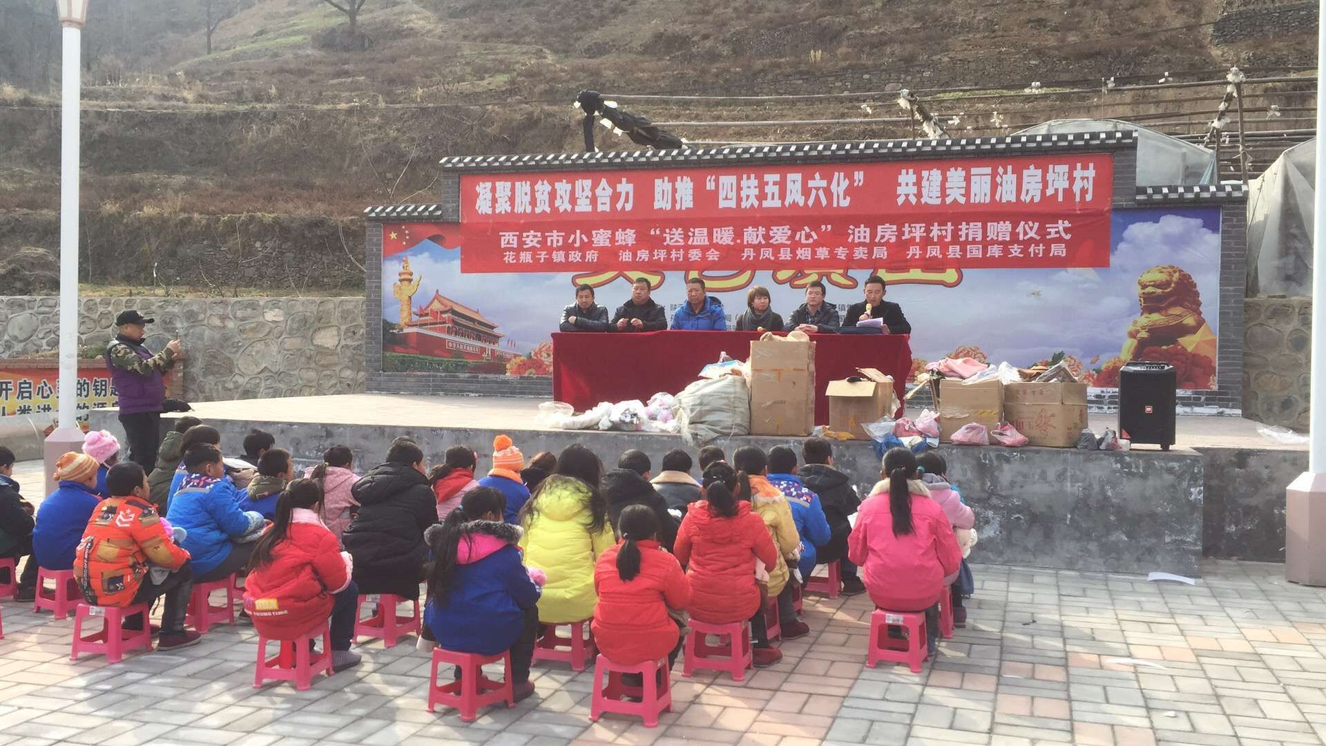 2018年1月19日,西安市小蜜蜂慈善公益組織負(fù)責(zé)人汪女士,攜手丹鳳縣煙草局黨支部、丹鳳縣國(guó)庫(kù)支付局黨支部暨花瓶子鎮(zhèn)政府,冒著嚴(yán)寒,從西安省城來(lái)到油房坪村,開(kāi)展“送溫暖、獻(xiàn)愛(ài)心”溫暖衣發(fā)放儀式,對(duì)30名留守兒童發(fā)放羽絨服、保暖內(nèi)衣、圍巾、耳套、鞋子、裙子等價(jià)值1萬(wàn)余元物品,用實(shí)際行動(dòng)詮釋著人間最質(zhì)樸的愛(ài),受到捐贈(zèng)的留守兒童,他們非常感謝黨和人民的關(guān)懷以及社會(huì)這么多好心人為他們送去的衣物,在以后的生活學(xué)習(xí)中,學(xué)會(huì)感恩,以優(yōu)異的成績(jī)回報(bào)各級(jí)領(lǐng)導(dǎo)以及社會(huì)的關(guān)懷。