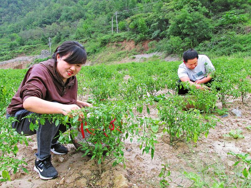 “這里原來是一個堆砂場,今年進行了墊土復耕,栽種了辣椒。這9畝地可收獲辣椒400多公斤。”10月11日,丹鳳縣龍駒寨街辦保倉村主任周斌向筆者介紹。據(jù)了解,丹鳳縣水利局聯(lián)合龍駒寨街辦及保倉村村委會組織施工隊,于今年4月對該處堆砂場臨時板房進行拆除,組織人力機械進行平整覆土施工,達到耕種條件后移交保倉村村委會組織群眾耕種,對恢復的9畝農(nóng)田及時種植了辣椒苗,辣椒喜獲豐收,群眾得到了實惠。(劉春榮 攝)