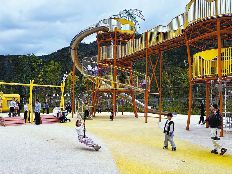 國慶假期后,丹鳳縣棣花鎮(zhèn)葡萄星球游樂場延續(xù)“免門票”福利,作為丹鳳本地特色文旅IP,此項(xiàng)舉措激活本地游市場,成為家庭周末出行的熱門選擇。圖為十月十九日,許多家長帶著孩子在游樂場里玩耍。(本報(bào)記者 謝非 攝)