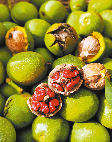 △紅仁核桃具有仁色鮮紅、營養(yǎng)價值極高、口感酥脆微甜等特點,深受顧客歡迎。