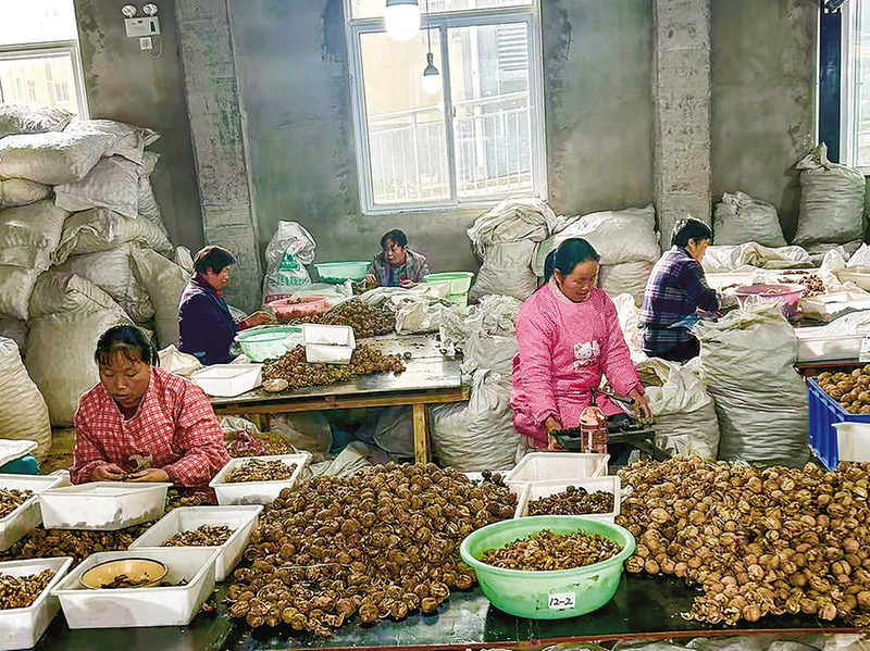 在初加工區(qū),工人正在對(duì)核桃進(jìn)行精細(xì)分揀。來(lái)自洛源街社區(qū)的張彩云手指翻飛,熟練地將核桃按品級(jí)分裝。“在這里上班,既學(xué)到了技術(shù),又能照顧家里,別提心里有多美了。”她笑著說(shuō)。這個(gè)建在群眾家門(mén)口的加工點(diǎn),目前已穩(wěn)定帶動(dòng)60多名當(dāng)?shù)厝罕妼?shí)現(xiàn)就業(yè)增收。