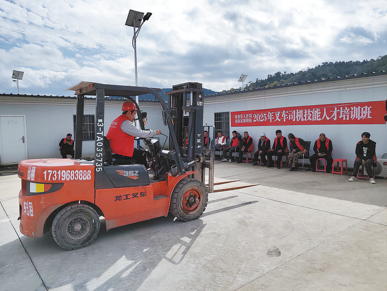 為全面打贏穩(wěn)就業(yè)促增收硬仗,洛南縣以“技能照亮前程”為主題,聚焦農(nóng)村勞動力、脫貧群眾等重點群體就業(yè)需求,積極開展職業(yè)技能提升培訓(xùn),助力更多群眾掌握一技之長,實現(xiàn)就業(yè)創(chuàng)業(yè)。圖為10月15日,洛南縣人社局聯(lián)合洛南富康職業(yè)技能培訓(xùn)學(xué)校,在石門鎮(zhèn)易地搬遷社區(qū)為30多名群眾開展叉車司機培訓(xùn)。(本報通訊員 王建榮 攝)
