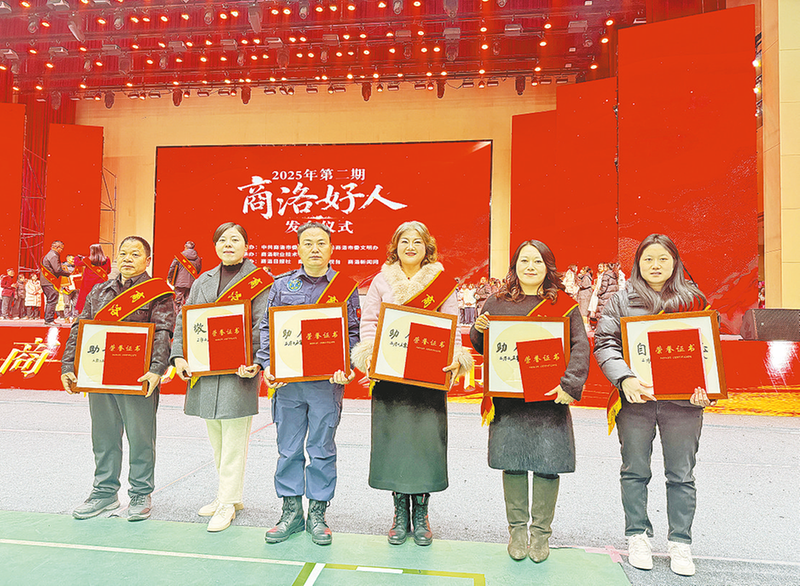 ?12月23日,2025年第二期“商洛好人”發(fā)布儀式在商洛職業(yè)技術(shù)學(xué)院舉行,雷振華(左一)榮獲助人為樂類“商洛好人”榮譽稱號。