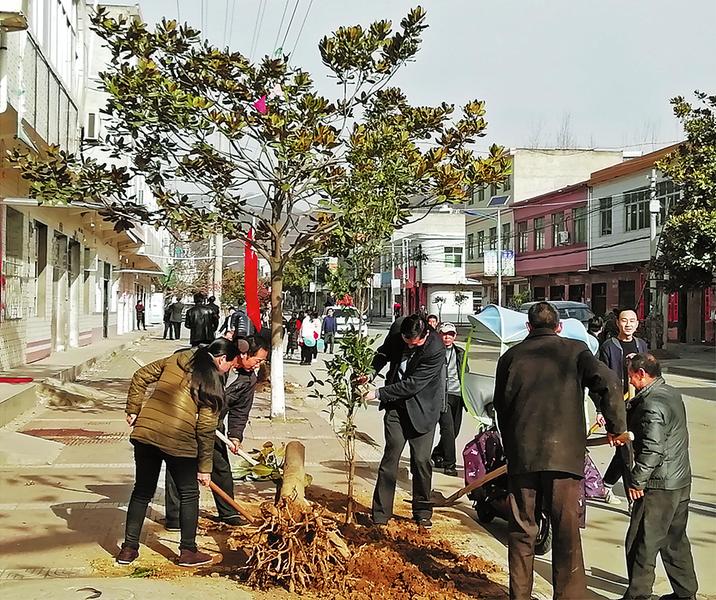 各村如火如荼地發(fā)展產(chǎn)業(yè),鎮(zhèn)上的幾個單位也采取支部聯(lián)建的方式,與村支部結(jié)對子傾情幫扶,農(nóng)業(yè)綜合、文衛(wèi)支部結(jié)合專業(yè)特長開展走村入戶服務(wù),鎮(zhèn)機關(guān)支部則對鎮(zhèn)街道進(jìn)行了環(huán)境整治提升,對主街道和支干道兩旁樹木進(jìn)行補植和換種,濫搭亂建亂種現(xiàn)象得到遏止,中小學(xué)生們?yōu)樾轮矘淠驹鹆藝鷻?,干部群眾齊動手,使整個街道的環(huán)境有了明顯改善。