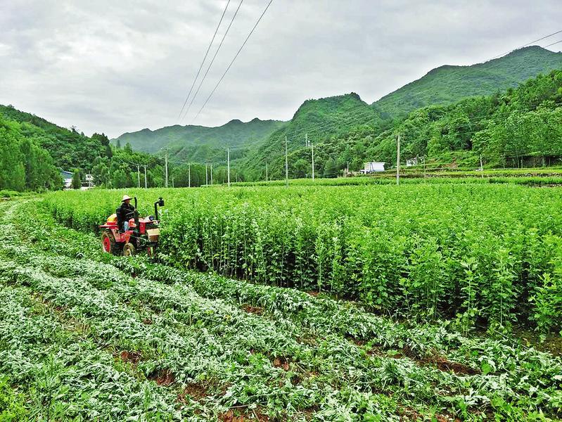 5月17日,在商南縣青山鎮(zhèn)馬蹄店村,人們邊哼著快樂的歌謠,邊在千畝艾蒿基地勞作著。貧困戶耿和虎滿面笑容地說道:“融匯公司與我們簽訂了土地流轉(zhuǎn)合同和務(wù)工協(xié)議,一畝地租金600元,我在這里務(wù)工一天掙100元,年底還有分紅。我家的茶山流轉(zhuǎn)給鴻德農(nóng)林業(yè)有限公司,忙完艾蒿采收我就去采茶,在家門口就能掙到票子了。”