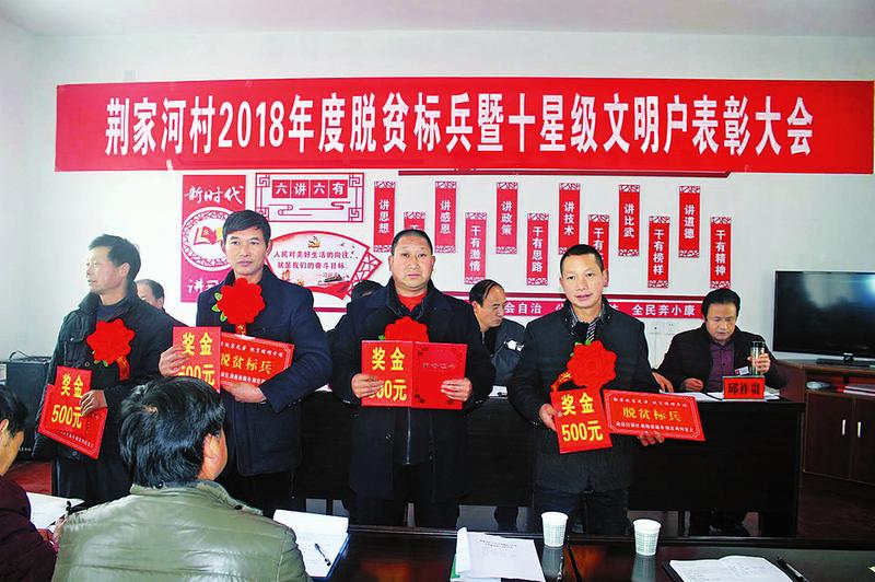 去年以來,在學(xué)習(xí)宣傳中、省、市和縣鎮(zhèn)先進(jìn)典型的同時(shí),我們高度重視身邊先進(jìn)典型的培養(yǎng)、指導(dǎo)、挖掘和宣傳工作,僅2018年就在全村107戶貧困戶中打造出4個(gè)脫貧標(biāo)兵。一是黨員脫貧帶貧標(biāo)兵何衍杉。作為一名退伍回村黨員,他2014年被識(shí)別為貧困戶,在包扶干部幫助下依靠發(fā)展藥材種植,2017年就脫了貧,脫貧后他不忘黨恩,成立“寶豐中藥材專業(yè)種植合作社”,吸納17戶群眾種植藥材,幫帶7戶貧困戶陸續(xù)脫貧,受到了商南縣領(lǐng)導(dǎo)的夸獎(jiǎng)。二是自強(qiáng)自立的獨(dú)臂漢子汪仁喜。他16歲時(shí)不慎失去右臂,2017年被識(shí)別為貧困戶,但他依靠黨的扶貧政策開電磨坊、養(yǎng)豬、種香菇,2018年底徹底脫貧,在商南縣脫貧誓師大會(huì)上受到表彰獎(jiǎng)勵(lì),被譽(yù)為“立志脫貧標(biāo)兵”的榜樣。三是申請(qǐng)摘帽標(biāo)兵甘齊成。他因住房和女兒上大學(xué)2016年被識(shí)別為貧困戶,在干部幫扶和政策扶持下,通過釀造高粱酒和養(yǎng)殖土蜂蜜,兩年就脫貧致富了。2018年9月,他主動(dòng)遞交申請(qǐng)要求退出貧困戶,不再享受扶貧政策。四是替黨分憂回報(bào)社會(huì)的楊培斌。他2015年被識(shí)別為貧困戶,通過參加村實(shí)用技術(shù)培訓(xùn),利用產(chǎn)業(yè)幫扶資金和貼息貸款發(fā)展養(yǎng)豬、養(yǎng)羊和制作臘肉等,于2017年脫貧摘帽。脫貧后的楊培斌成立合作社幫帶5戶貧困戶也脫了貧,且向村支部遞交了入黨申請(qǐng)書,要求入黨替黨分憂,被樹為“脫貧致富心向黨、摘帽爭當(dāng)積極分子”標(biāo)兵。