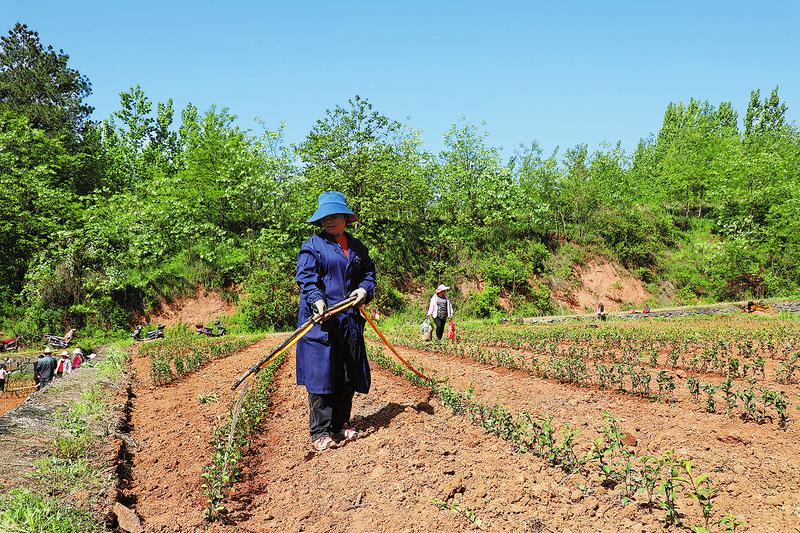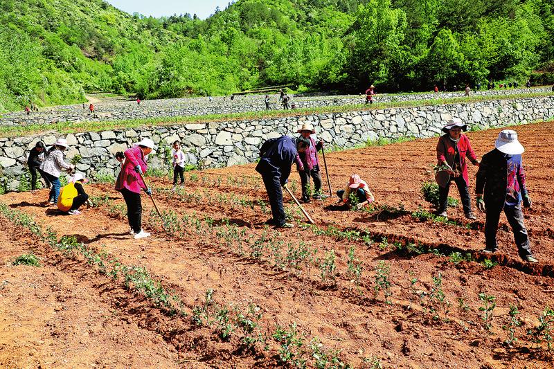 近日,商南縣富水鎮(zhèn)沐河村二組的陳家溝紅茶產(chǎn)業(yè)基地,60多名務(wù)工群眾正在茶葉基地平整土地、栽植茶苗、澆水覆土。據(jù)悉,陳家溝紅茶產(chǎn)業(yè)基地今年3月份建成,占地310畝,基地通過土地入股、務(wù)工帶動77戶農(nóng)戶增收。(見習記者韓露攝影報道)