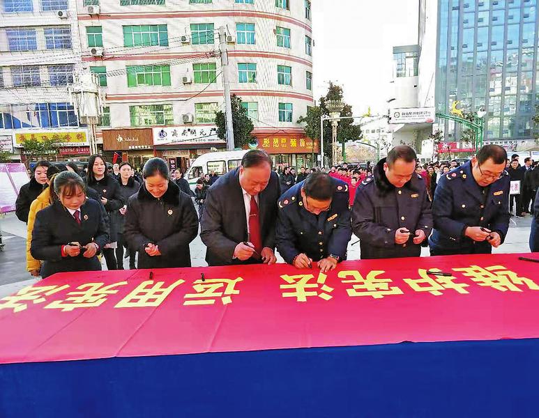 結(jié)合“三城聯(lián)創(chuàng)”實(shí)施窗口宣傳。將法治宣傳教育工作納入“三城聯(lián)創(chuàng)”的重要內(nèi)容中,開(kāi)展“依法行政示范單位”“法治鎮(zhèn)”“民主法治示范村”等創(chuàng)建活動(dòng),推動(dòng)法治工作向縱深發(fā)展、向高端延伸。