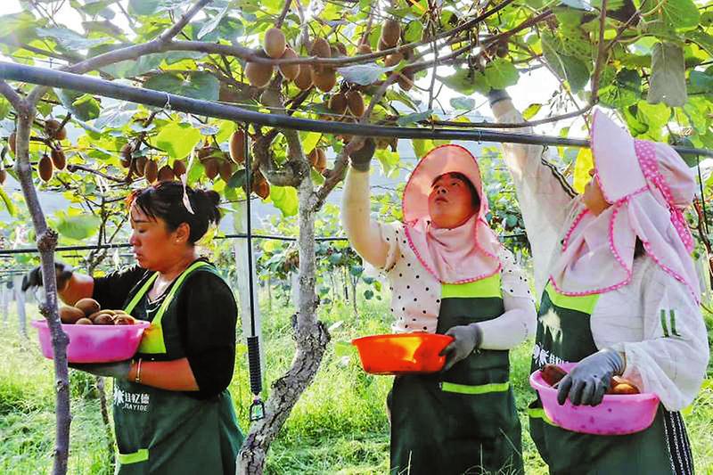 “咱們村種的狝猴桃今年進入豐產(chǎn)期了,現(xiàn)在已經(jīng)開始采摘了,正需要人手,我們在家也是閑著,去幫忙采摘,一天還能賺近百元。”9月初,家住商南縣富水鎮(zhèn)馬家溝村村民李改順吆喝上鄰居,跟他一起去摘果子。今年60多歲的李改順,因為年齡大了,無法外出務(wù)工,平日里跟家人在狝猴桃園區(qū)里干農(nóng)活,每人每月可收入1500元左右,極大改善了他們家的日常生活。