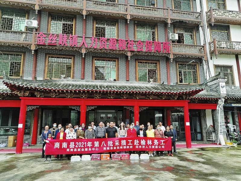 9月5日,商南縣就業(yè)服務(wù)中心聯(lián)合金絲峽鎮(zhèn)人民政府、商洛同舟濟(jì)人力資源公司,舉行2021年第八批采摘工赴榆林務(wù)工歡送儀式,現(xiàn)場(chǎng)為42名務(wù)工人員免費(fèi)贈(zèng)送了人身意外傷害保險(xiǎn),發(fā)放了生活用品。據(jù)悉,這批采摘工將安置到陜西榆林大地種業(yè)有限公司,從事兩個(gè)半月的撿土豆工作,日均工資150至180元,預(yù)計(jì)可實(shí)現(xiàn)人均增收1.2萬(wàn)元。(桂青圓 攝)