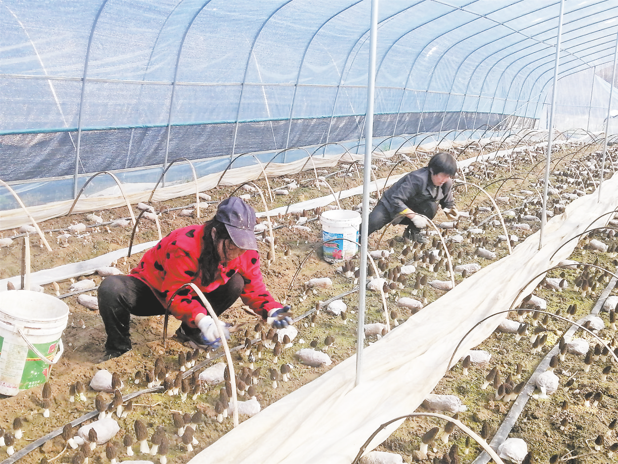 陽春三月,鮮花盛開。在商南縣金絲峽鎮(zhèn)寺灣村丹江河畔,一排排塑料大棚里,新鮮的羊肚菌拱土而出,三三兩兩的村民正忙著采摘菌菇。