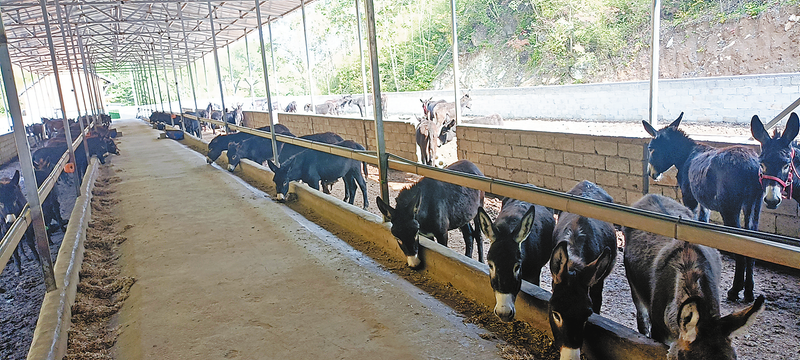 肉驢養(yǎng)殖基地一角