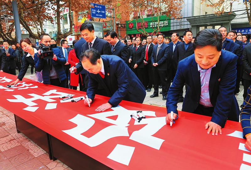 12月4日上午,在第五個(gè)國家憲法日暨全國法制宣傳日到來之際,山陽縣人大常委會(huì)組織開展“弘揚(yáng)憲法精神、建設(shè)法治山陽”憲法宣傳活動(dòng),縣各部門領(lǐng)導(dǎo)、工作人員代表和學(xué)生代表及群眾共700多名參與宣誓及簽名活動(dòng)。