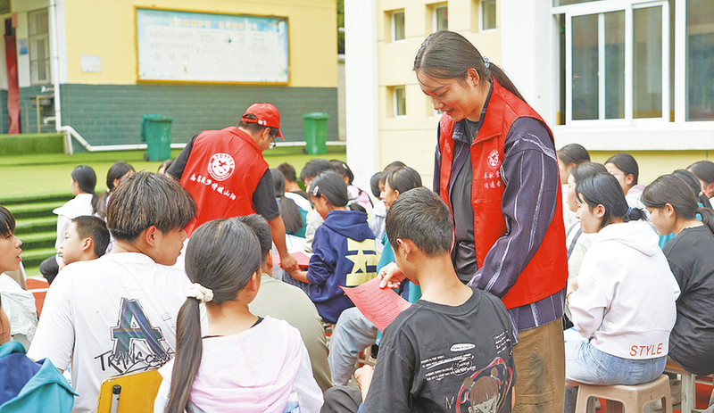 ?兩嶺社區(qū)組織志愿者開展“普法進(jìn)校園”活動,通過互動講解、資料發(fā)放等形式,將法治理念融入未成年人教育,助力基層善治。(資料圖片)