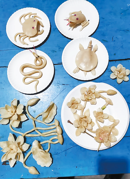 功夫不負(fù)有心人,在一次親戚的宴席上,康明娥偶然得知堂弟康明林會(huì)做果獻(xiàn)面花,她立刻邀請(qǐng)康明林來學(xué)習(xí)水獻(xiàn)面花。